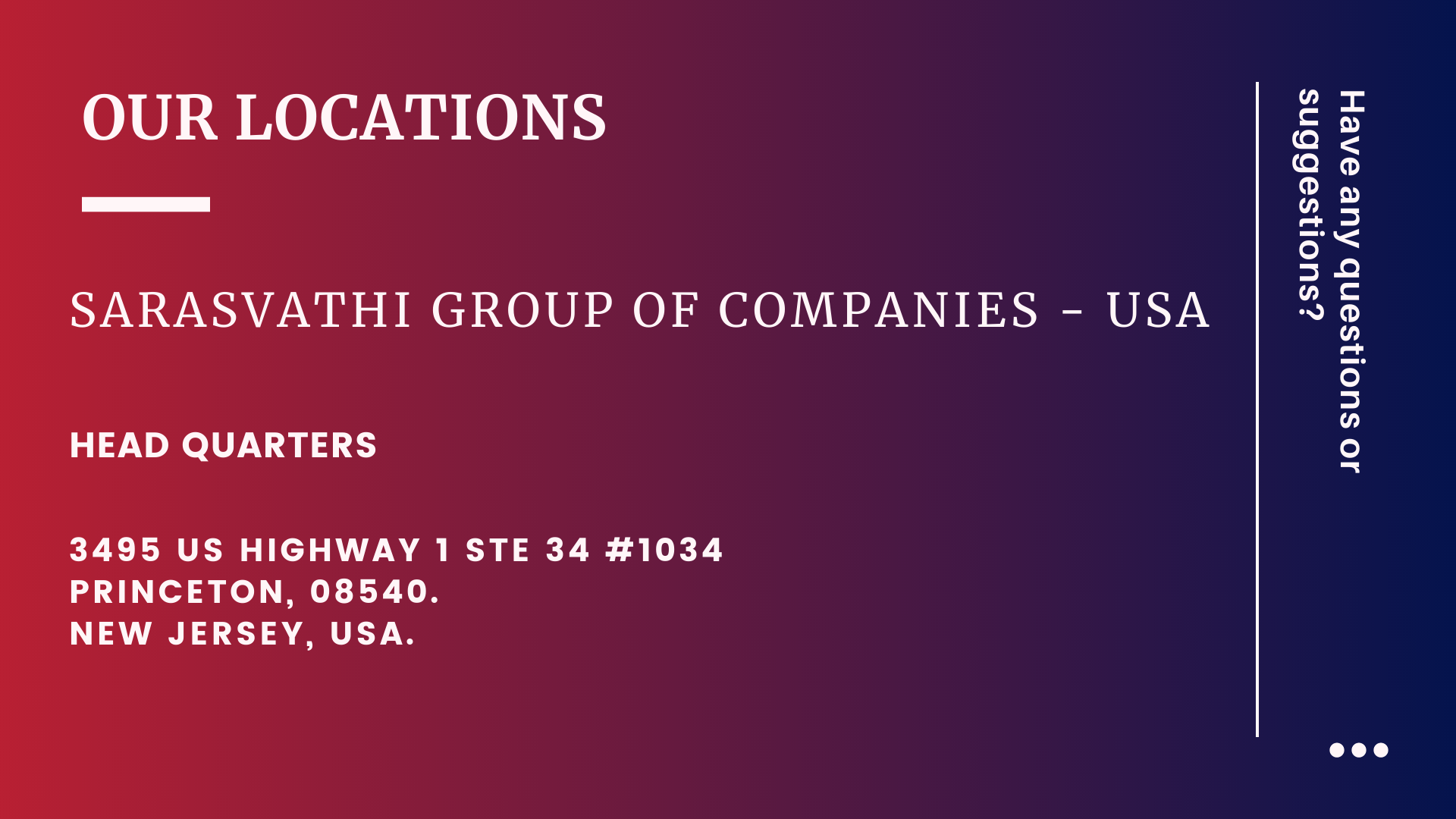 Our development and Data center, Sarasvathi IT infrastructural development & Architectural consulting company, is in India.